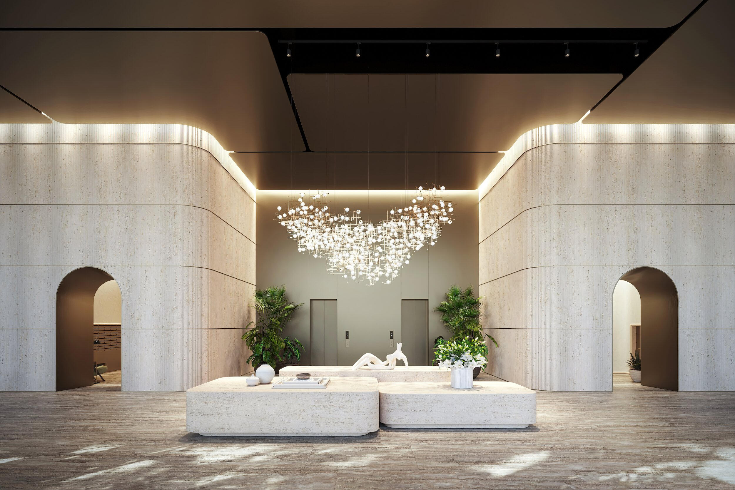 Residents and guests enter through a stunning lobby with a series of unique spaces including and Impressive porte-cochere and lush, urban garden which creates a discrete and private, yet welcoming arrival experience…